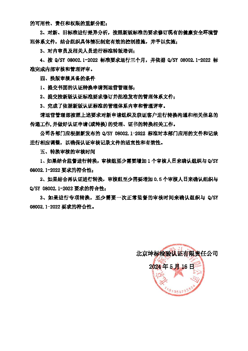 QS/Y 08002. 1-2022認證標準換版工作的通知 坤標認證[2024] 11號